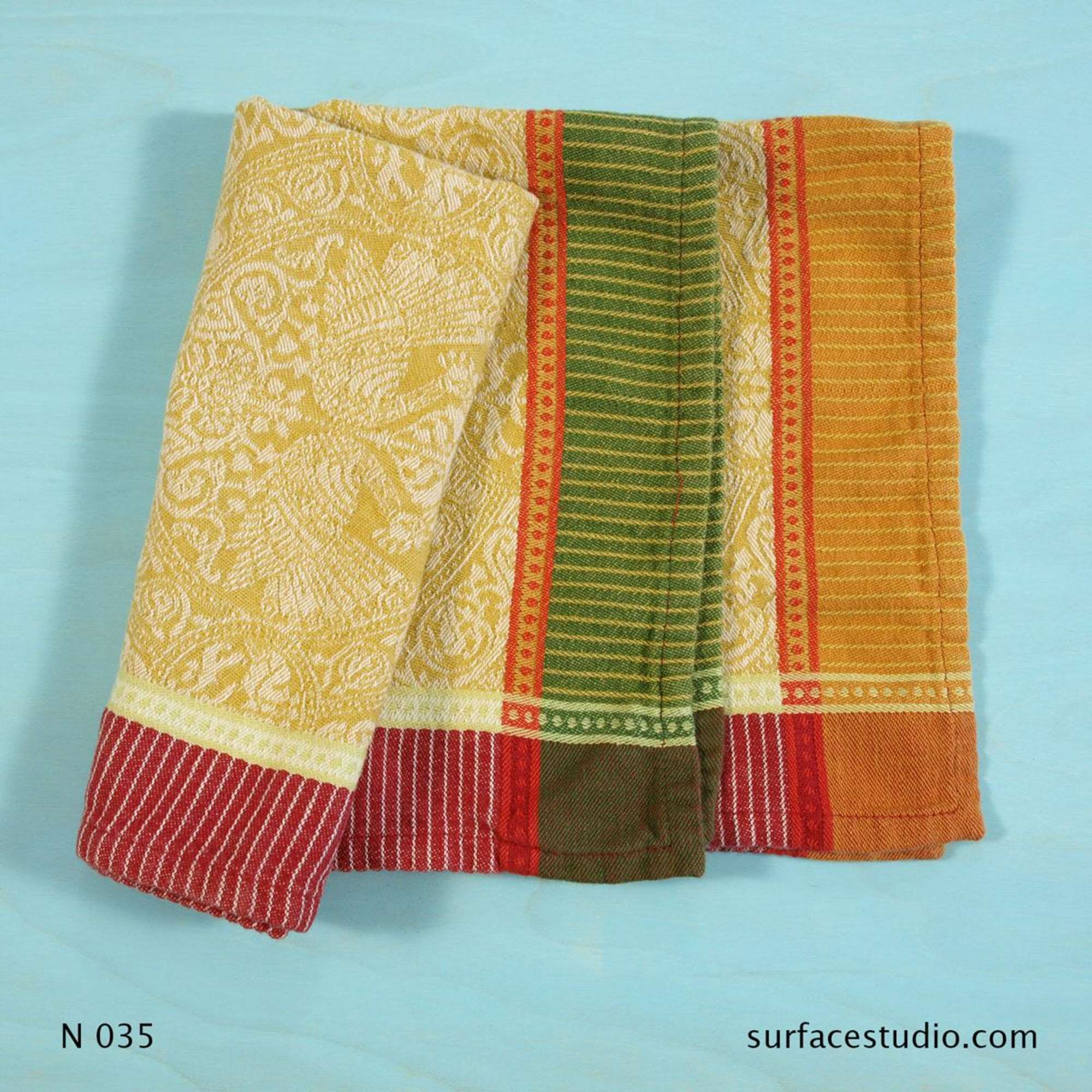 N 035 Patterned Yellow Multicolor Bordered Napkin